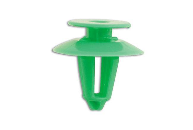 | 40 piezas | 18.3 mm. | 18.5 mm. | 7.7 mm. | OPEL: 2345957 GM: 90321122 FOD: 1591426 | Grapa de nylon (unión) verde para tapicería interior: Paneles de puertas. |
